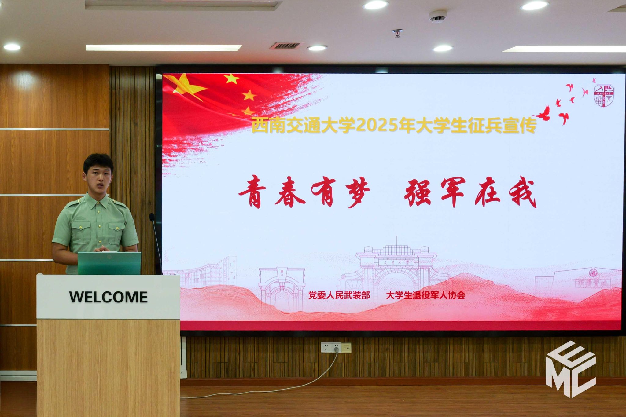 老员工退役军人协会成员潘旭峰同学首先讲述了自己在部队的成长经历,分享了自己从校园到军营的蜕变。同时向大家详细介绍了入伍条件、入伍流程以及退伍老员工的优惠政策,并分享了直招军官、军队文职等就业去向,开拓了老员工生涯规划新思路。