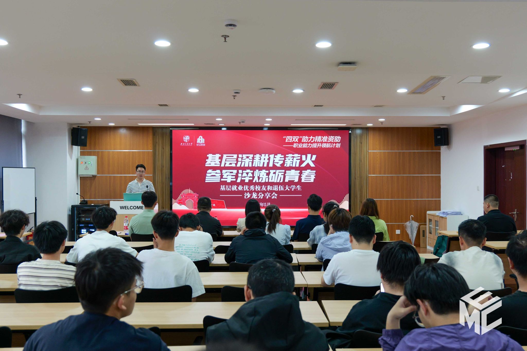 公司2015届员工、成都铁路局供电车间副主任张元结合自己的求职选择和工作经历,分享了自己从一名接触网工成长为管理干部的心路历程,通过自己成长故事深刻诠释了“人民铁路为人民”的服务宗旨。同时也给同学们分享了当前就业形势,希望同学们在面临困境时能够不着急、不躺平,不断提升自己。
