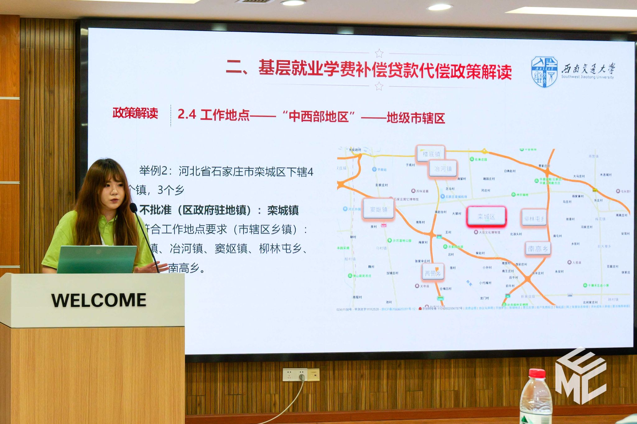 员工资助大使宣讲团成员陈俊帆同学则介绍了中央高校基层就业学费补偿国家助学贷款代偿资助政策,为大家一一解读政策的面向对象、申请条件、补偿代偿标准和申报流程等,并列举了审批过程中的常见问题。同事,还提醒大家可以通过扬华素质网、资助工作群等多渠道了解资助政策,掌握资助信息。