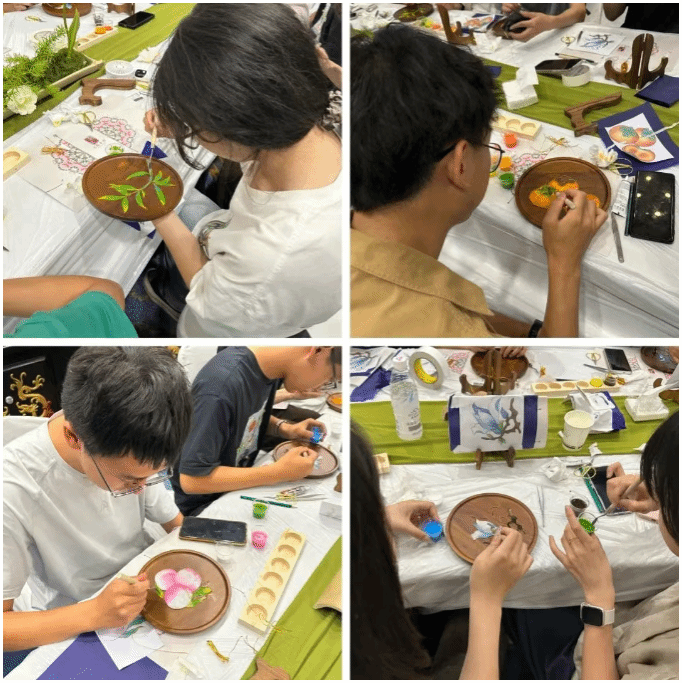 经过数小时的潜心制作,两组同学都完成了自己的非遗手工作品。点翠胸针流光溢彩,掐丝珐琅摆件色彩斑斓。活动尾声,大家互相欣赏品评,分享创作过程中的感悟与挑战的喜悦。