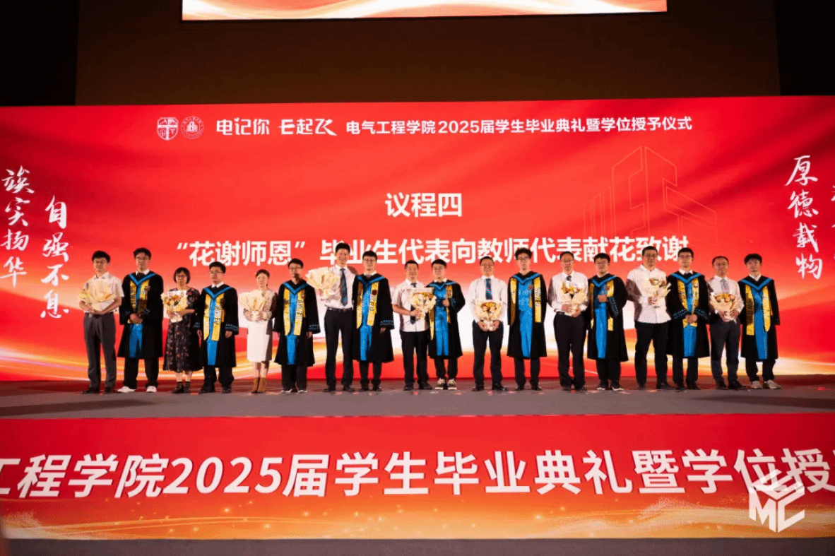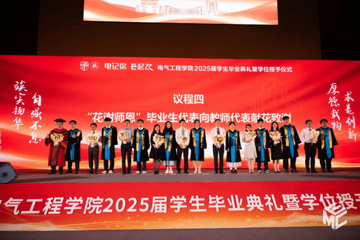 成长过程中,班导师既是学业上的引路人,也是生活中的知心朋友。毕业生代表们手捧芬芳的鲜花,向辛勤耕耘的教师代表献花致谢,表达最崇高的谢意与最美好的祝福。