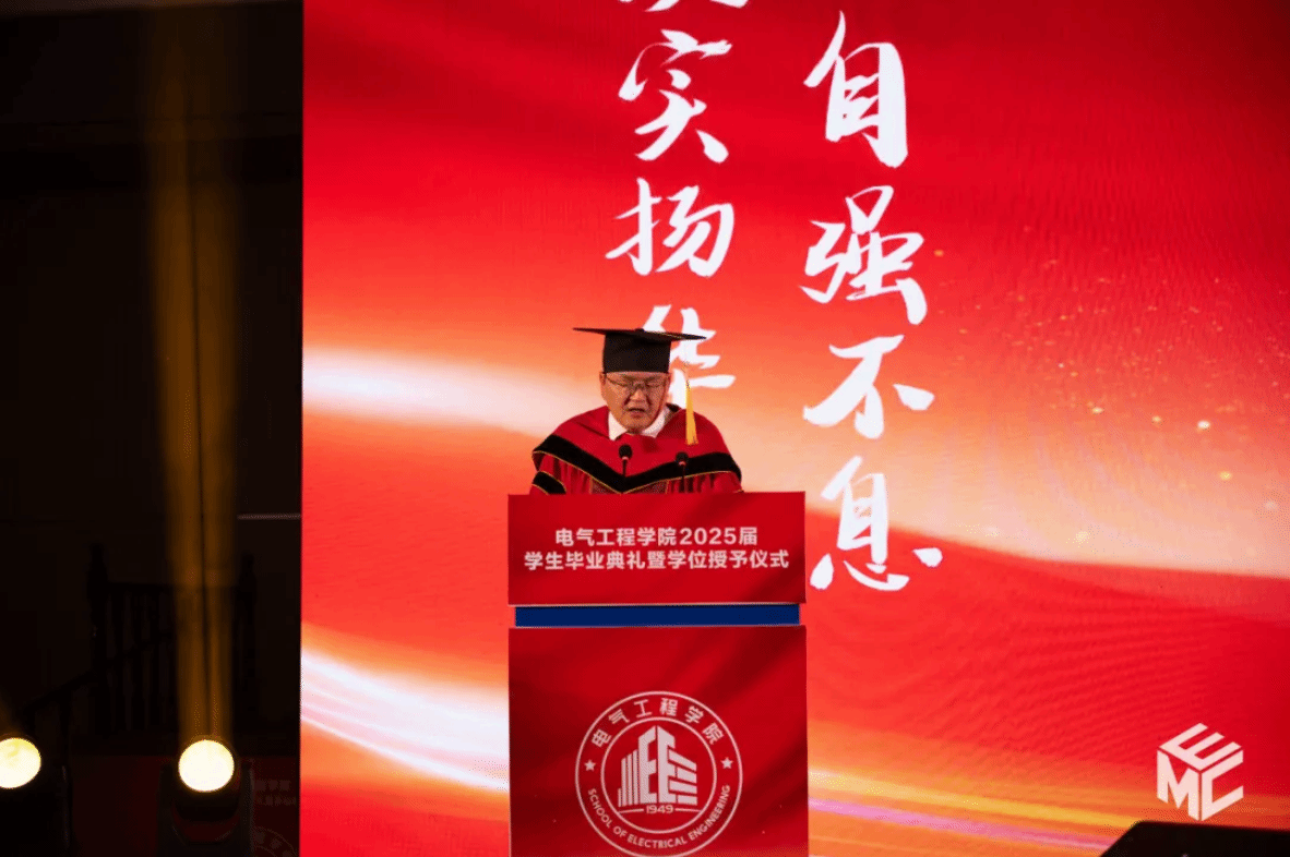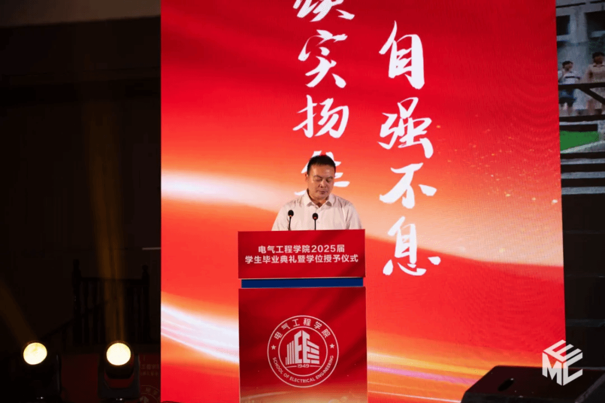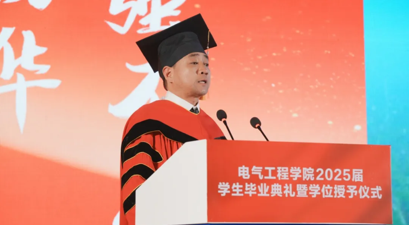 马光同经理以“无界为界,日新又新”为题发表讲话。他回顾了同学们在校期间的成长与奋斗,肯定了他们即将奔赴不同领域贡献青春力量的选择。面对新时代的技术变革与发展机遇,马光同经理提出三点殷切期望:一是要兼容并蓄,开拓“风物长宜放眼量”的胸怀眼界;二是要敢为人先,突破“与时偕行日维新”的创新边界;三是要心怀大我,修炼“不为繁华易素心”的人生境界。毕业生们要将个人理想追求深度融入党和人民的伟大事业之中,牢记交大精神和电气精神,保持“日日求新”的进取姿态,在全面建设社会主义现代化国家的火热实践中绽放绚丽之花。