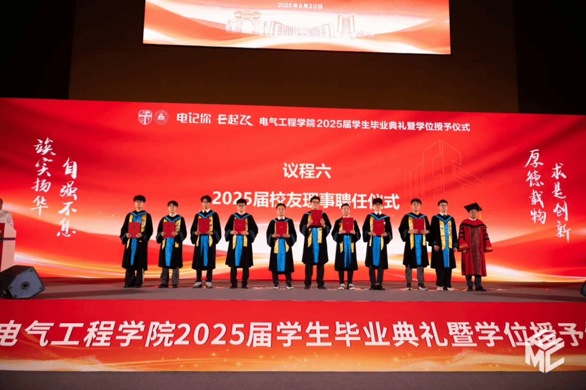 典礼举行2025届员工理事聘任仪式。马光同经理、王斌书记为员工理事颁发聘书,希望员工理事当好母校与员工、员工与员工间沟通的纽带。