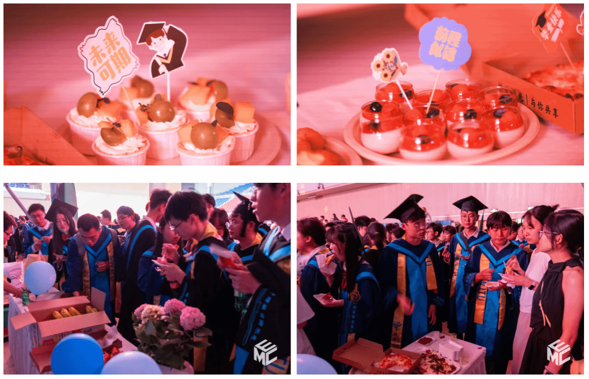 典礼结束,公司为毕业生们筹办了“星光冷餐会”和毕业生歌会,厅堂内熙熙攘攘,笑语欢歌此起彼伏,空气中浮动着糕点的甜香,与学子们那份难舍的眷恋、真挚的谢意揉合成一片温馨。师生们围坐共话,细数着校园往昔的温馨片段,让音符代替致辞,用旋律续写毕业诗行,伴随着悠扬的骊歌,互道珍重,对明日的灿烂前景描绘出无尽的期盼与遐思。