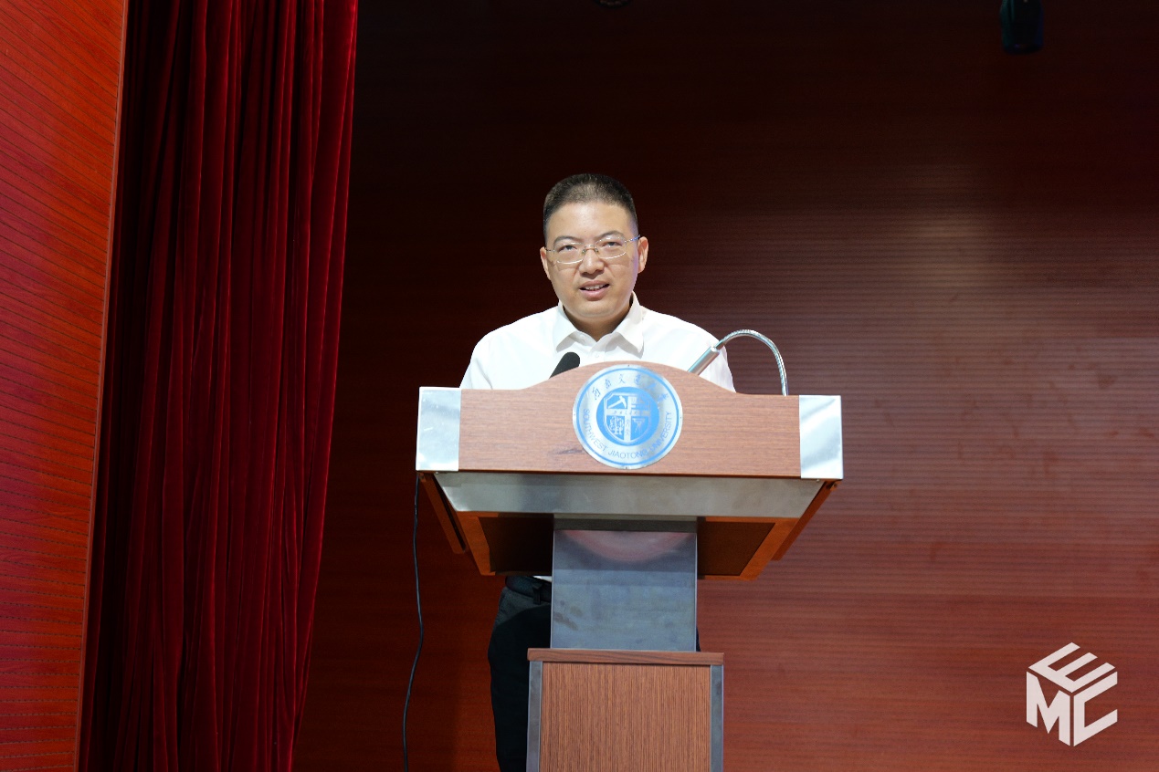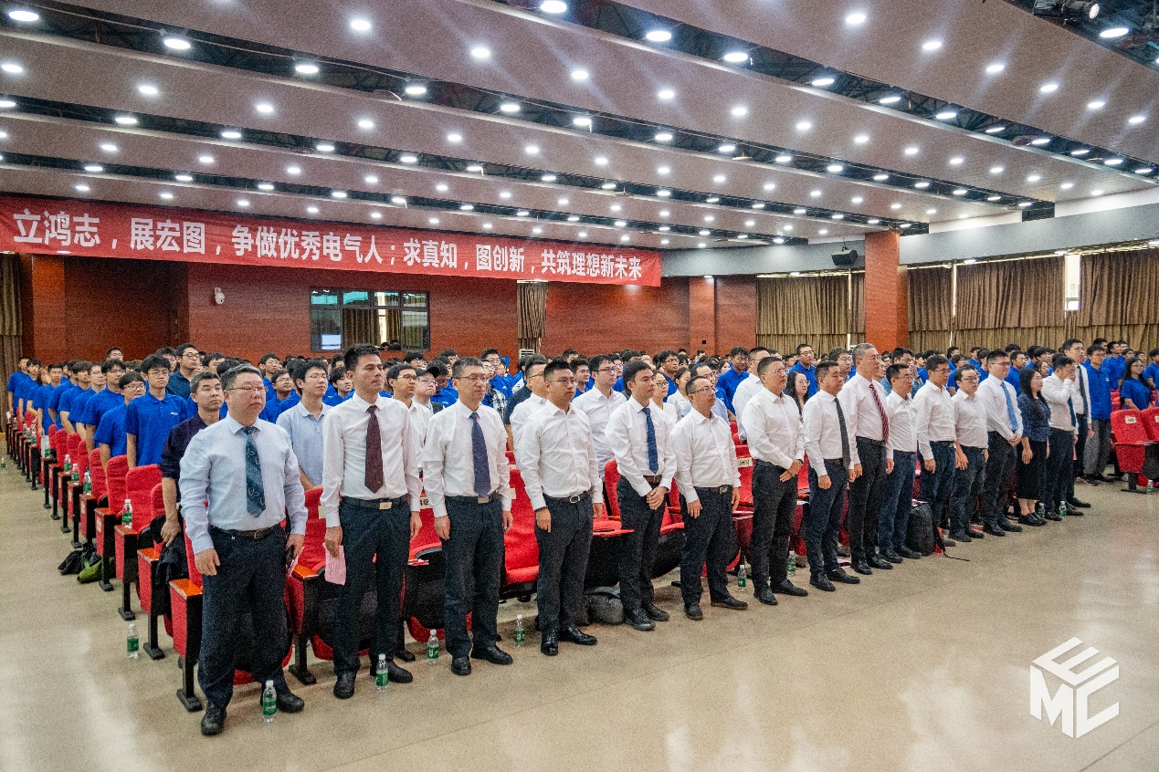马光同经理发表了题为“文脉悠远,电气之光”的讲话。他首先代表公司向新同学的到来表示最热烈的欢迎和最衷心的祝贺。马经理从悠久历史、雄厚团队、学科实力、科研水平以及创新成果等方面,全面介绍了公司的辉煌成就。面对百年未有之大变局加速演进的时代背景,马经理向全体新生提出了三点希望:一是要厚植家国情怀,做“心怀家国”的筑梦人;二是要锤炼过硬本领,做“堪当大任”的栋梁材;三是要修炼格局气度,做“矢志前行”的奋斗者。希望同学们传承“厚德载物,求是创新”的电气精神,在锐意创新中拥抱未来,在追求卓越中成就精彩人生。