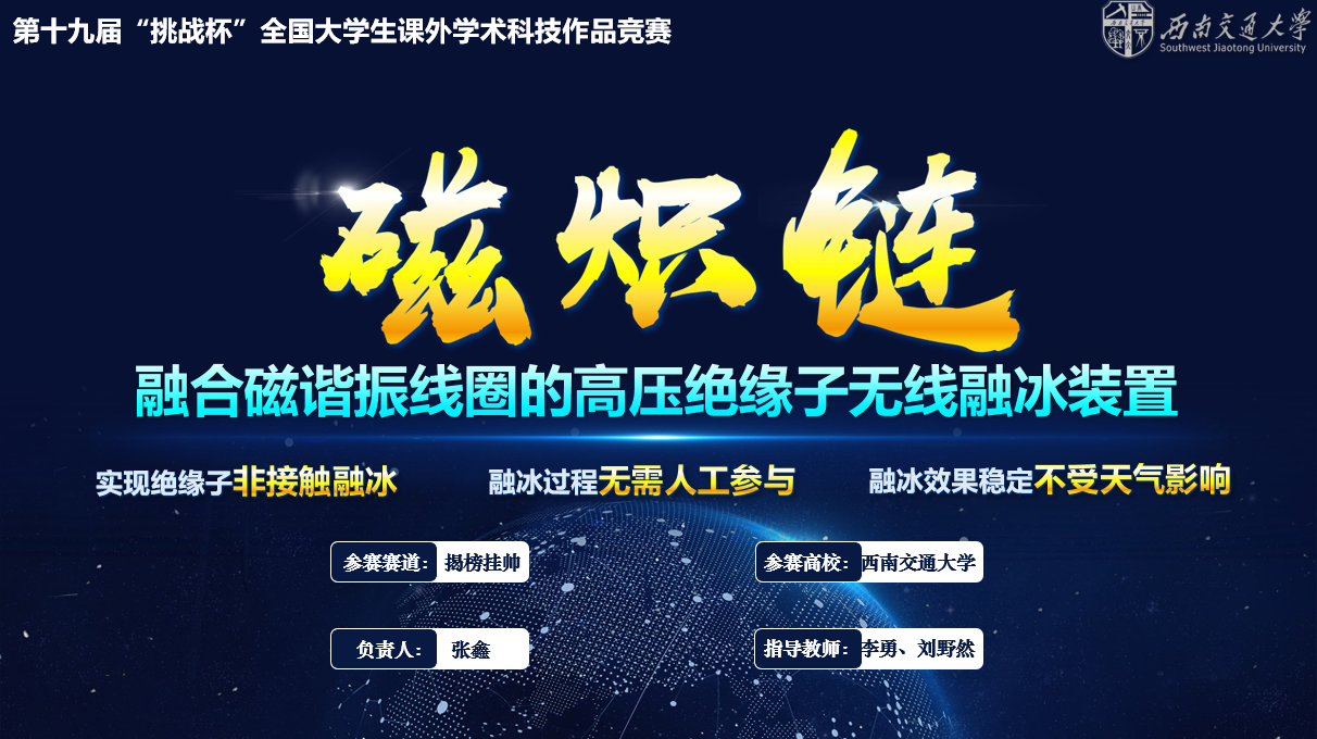 10月14日,2025年度中国青年科技创新“揭榜挂帅”擂台赛“新能源领域”终审主擂台赛在北京昌平圆满落幕。在校团委的指导下,伟德体育李勇老师指导的作品“磁炽链-融合磁谐振线圈的高压绝缘子无线融冰装置”,在全国众多参赛项目中脱颖而出,代表公司成功斩获员工赛道特等奖,这是公司在“挑战杯”这一全国顶级科创赛事的“揭榜挂帅”赛道上,首次斩获特等奖,实现了这项荣誉的“零突破”,以硬核科创实力诠释“青春为中国式现代化挺膺担当”的赛事主题。