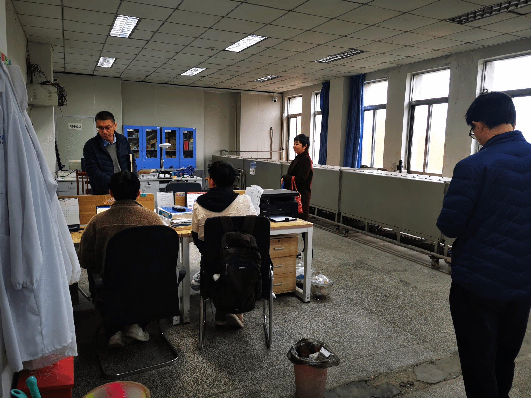 首先解绍锋副经理对本次检查做了部署和要求:1、本次检查分成三组九里、犀浦10教和馆外实验室、6教和1教进行检查;2、检查中要重点检查实验室食品、物品的摆放、实验室卫生、安全离开实验室检查表登记、特别是危化品等检查要细。