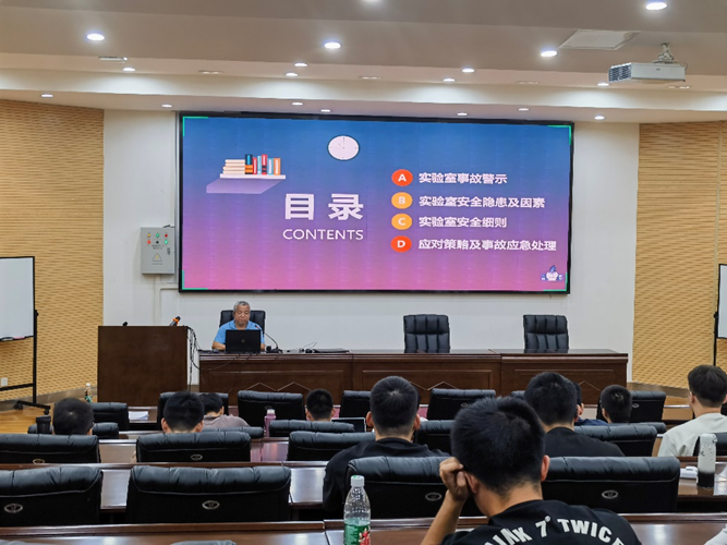 解绍锋副经理首先阐述了实验室安全的重要性,这是跟以前本科阶段实验室的安全是有本质的区别,学习和了解实验室安全知识将是保障大家在之后的科研活动中安全重要基础。同时也要求大家大今后的科研活动中一定要遵守实验室安全的各项规范,了解实验设备的性能,保持良好的实验室环境。